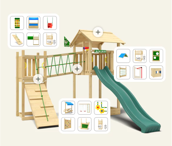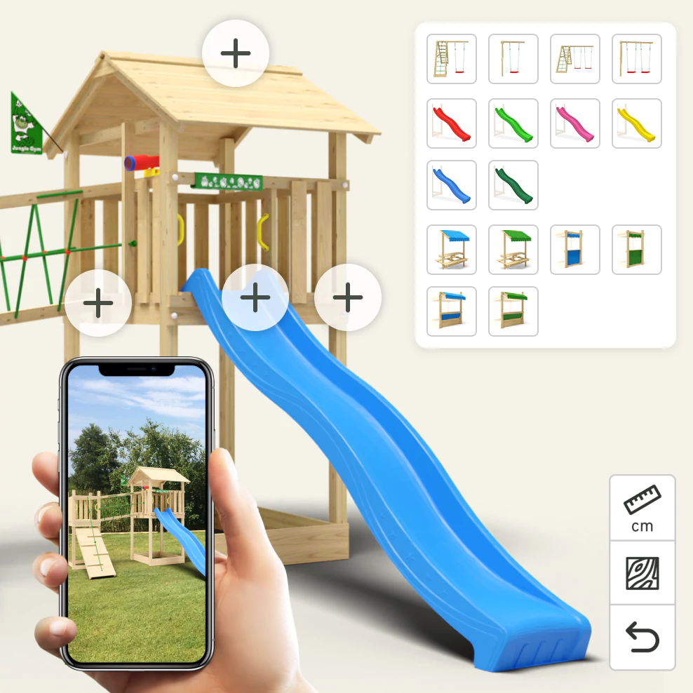 Embark on a design adventure with Jungle Gym’s “Design Your Own” climbing frame configurator! This 3D configurator allows you to either design a climbing frame from scratch or customise one from our existing range. Select from various modules, add playful elements like slides, climbing nets, or swings to create a unique climbing frame, perfectly tailored for your children and outdoor space. The simplicity of this tool guarantees a delightful experience in crafting a one-of-a-kind and personalised play haven for your young adventurers.